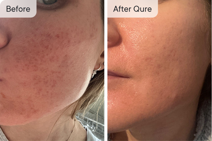 With consistent use, Qure supports long-term skin health and helps you maintain a radiant, balanced complexion, all without needing to layer on multiple products or book clinic appointments. *As reported by customers in self-perception surveys and before-and-after images. Individual results may vary